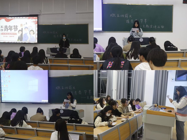 本次活动紧紧围绕“燃五四薪火,谱青春华章”这一主题,在同学们紧跟时事的内容和慷慨激昂的言语中展开。有的同学从五四运动的起因讲起,将与五四运动有关的故事娓娓道来;有的同学通过将五四精神与现代精神相结合,体现一代人有一代人的长征,一代人有一代人的使命;还有的同学将现代科技发展与当代青年的发展相结合,号召青年为中华民族伟大复兴而奋斗。