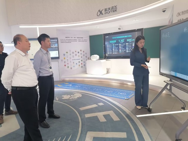 首先,在科大讯飞江苏大区高教行业总监王明松、科大讯飞高教咨询与解决方案总监段鹏举陪同下参观了解了公司的发展历程,并在公司人工智能展厅深入学习、体验科大讯飞在语音翻译、教育、医疗等方面的最新科技产品。