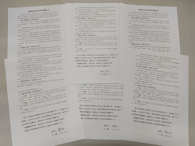 讲座之后,为确保校园安全教育入脑、入心、入行,公司还与全院同学签订了《beats365老员工安全责任确认书》,明确了同学们在校期间各项安全责任,对增强员工安全意识,引导员工自觉践行校园安全秩序有重要意义。
