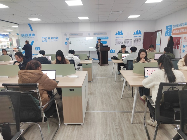 参观结束后,园区特邀公司优秀毕业生20电商1班饶岑龙学长,在跨境产业园会议室(老员工孵化基地)以“TIK TOK助力品牌跨境出海”为主题,向同学们做专题讲解。主讲人结合自身电商创业经历,就如何依托TIK TOK庞大用户基数为基础,积极开展跨境电商业务而详细展开。整个讲座紧跟时代发展形势,对跨境电商的新趋势进行了进一步展望,使在场同学的眼界大为开阔。