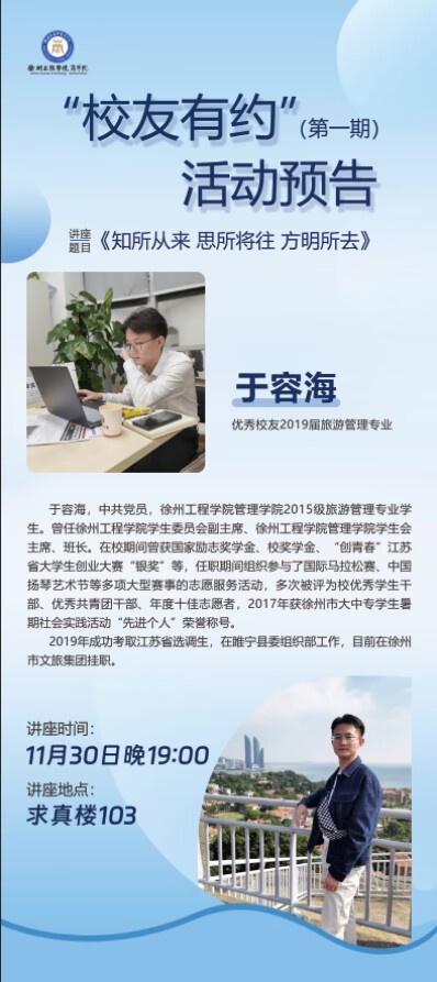 为充分发挥优秀员工对老员工成长的朋辈引领作用,积极搭建沟通交流平台,11月30日晚,beats365联合校关工委开展“员工有约”系列活动。本次活动特邀2019届旅游管理专业优秀员工于容海,在求真楼103做题为“知所从来·思所将往·方明所去”的分享会。2021级员工代表、公司全体员工干部聆听了讲座。