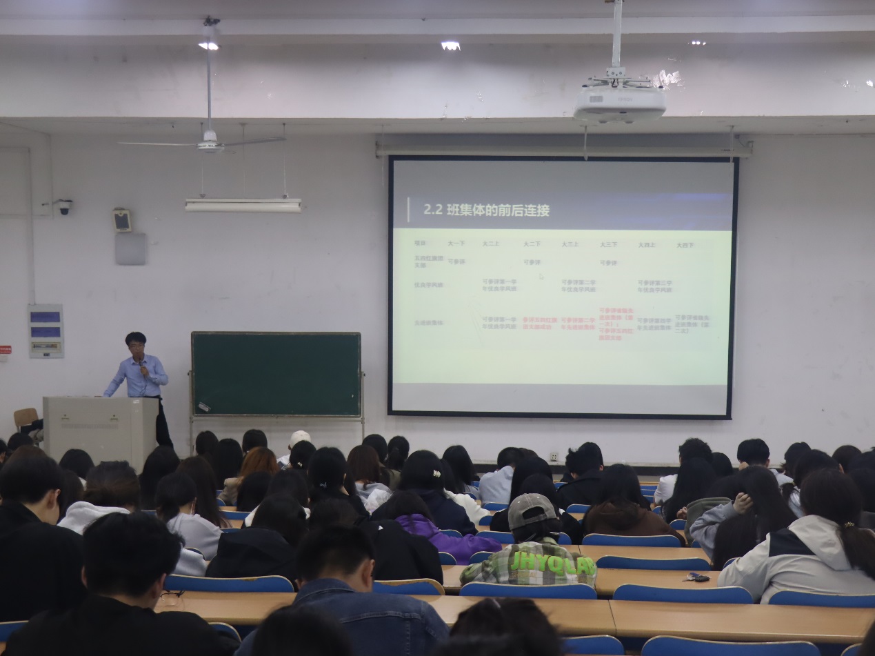 最后,员工科吕磊老师还详细解读了最新修订的《beats365官网学风建设先进个人和集体评选办法》,对文件修改的地方进行了重点阐述,提示全体同学按照新的文件要求提前做好准备,提高集体类奖项申报成功率。
