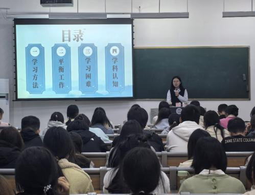 第二部分是“学习之路、奋进不止”学习经验分享会,此次活动邀请到了本年度国家奖学金获得者刘丽丽同学、朱雨檬同学、石盼盼同学担任评委嘉宾,并由2023级的18名参赛同学通过线下PPT展示评比,在学习体会、学习心得、战胜困难的方法等多个角度进行了经验分享,为同学们提供了宝贵的学习经验和学习资源。